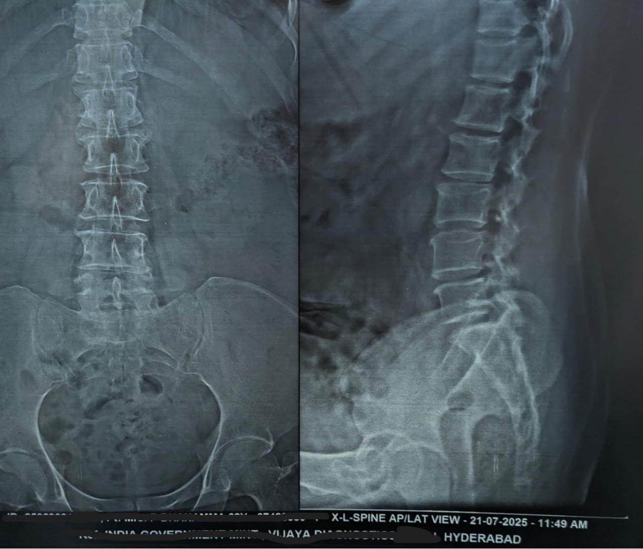 Lumbar spine X-ray after 14 days of Marma therapy (21 Jul 2025)
