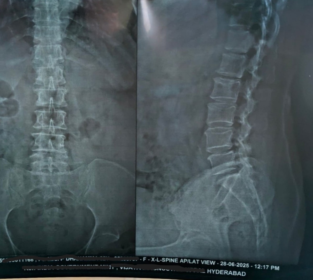 Lumbar spine X-ray before Marma therapy (28 Jun 2025)
